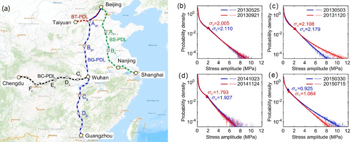 近期,中科院力学所魏宇杰研究员团队在《国际疲劳》(International Journal of Fatigue)发表了题为“A segmented load spectrum model for high-speed trains and its inflection stress as an indicator for line quality”的研究文章,揭示了高速列车转向架结构线路载荷谱的分段特性及其与线...