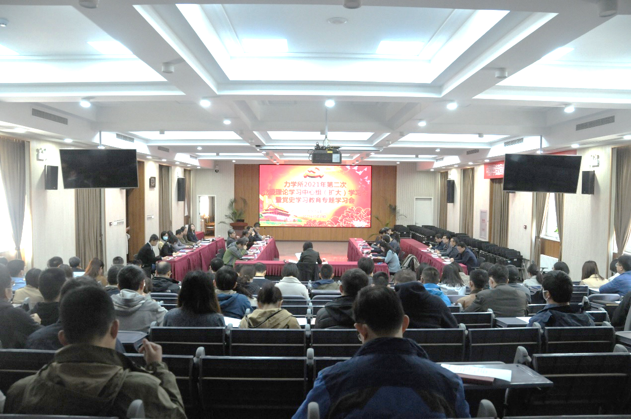3月29日,力学所党委召开2021年第二次理论学习中心组(扩大)学习会暨党史学习教育专题学习会。所党委中心组成员、中层干部、实验室主任、各党支部支委、工青妇负责人、副高及以上专业技术职务人员、六级及以上职员等120余人参加会议。会议由党委书记、所长刘桂菊主持。