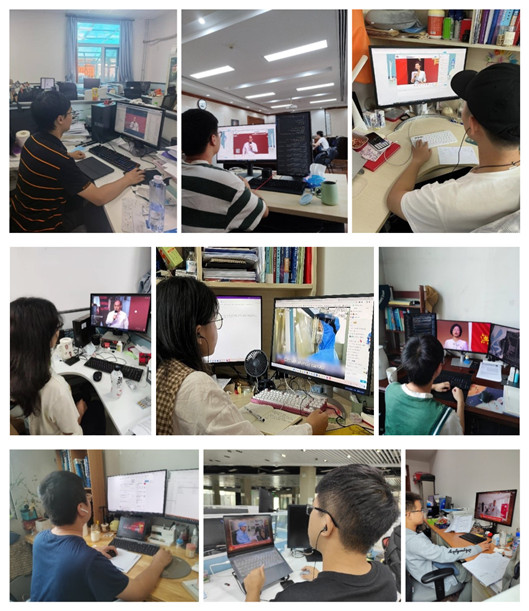 在做好常态化疫情防控前提下,力学所组织人员集中收看直播活动,观看了“以老科学家命名的科技攻关突击队授旗、宣誓”“科学家报告和访谈”“中国科学院大科学装置连线”等篇章,并参与了在线竞答环节。集中收看直播活动的所领导、科研骨干代表、研究生代表等手持国旗、情绪饱满,深情演唱《我和我的祖国》,表达对国家繁荣富强的祝福。各党支部也在实验室就近地点组织职工、研究生集中收看,或通过手机移动端参加线上活动。