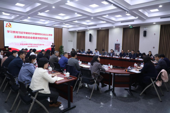 启动会后,举行了力学所主题教育读书班开班仪式,与会人员以“学习党的二十大报告和中国共产党章程”为主题开展读书班第一次专题学习。按照力学所主题教育读书班学习计划安排,在前期个人自学的基础上,读书班将组织为期一周的集中学习,原原本本、逐字逐句研读主题教育指定学习材料,并结合工作实际,进行交流研讨。此外,读书班还将通过实地调研、辅导讲座等形式开展学习研讨,切实推动主题教育走深走实。