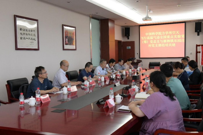 7月13日下午,LHD党总支与怀柔区雁栖镇乐园庄村党支部在力学所怀柔园区举行了结对共建活动。怀柔区委常委、统战部部长鲍晓健,副部长房淑军、崔波,雁栖镇副镇长肖冰,村党支部书记蔡长海,第一书记张明哲及支委参加了结对共建活动。力学所副所长、LHD实验室主任黄河激,LHD党总支书记赵伟,党总支副书记兼实验室副主任李飞,第一党支部书记申义庆及全体支委和园区的党员代表参加了本次活动。会议由赵伟主持。