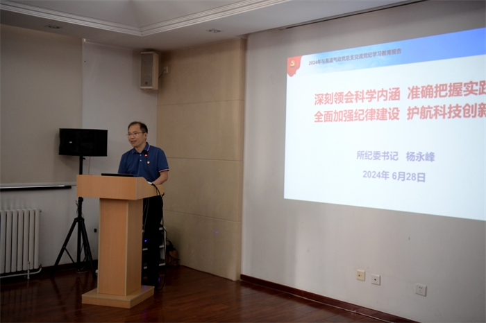 杨永峰作题为《深刻领会科学内涵 准确把握实践要求 全面加强纪律建设 护航科技创新攻坚》的主题报告,传达学习习近平总书记关于党纪学习教育的重要论述和指示精神,深刻领会习总书记关于党的自我革命的重要思想。他结合个人党纪学习感悟与工作中的典型案例,从历史、现实及未来三个维度全面阐述了党纪学习教育的深远意义。在全院工作来看,加强党纪学习教育和贯彻落实是确保科技创新事业健康发展的坚实基础,也是保护党员干部和科学家的切实需求。