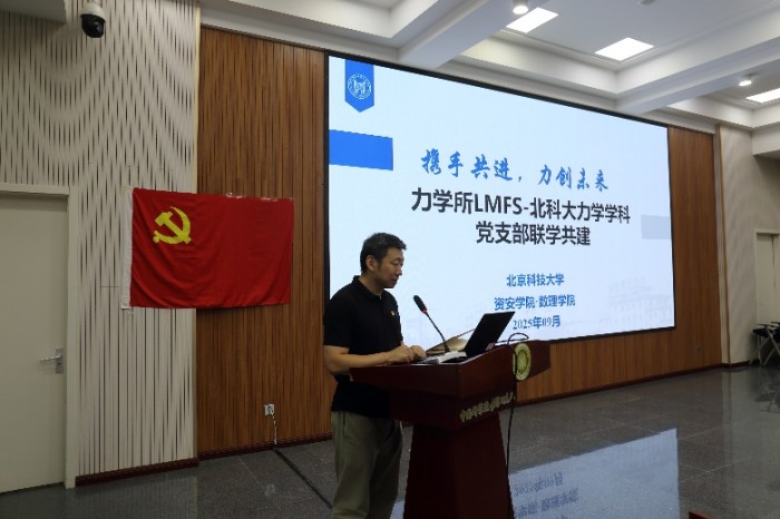 2025年9月12日,中国科学院力学研究所流固耦合系统力学重点实验室(“LMFS”)党总支与北京科技大学力学科学与工程系(“北科大力学系”)党支部在力学研究所开展联学共建活动。北科大力学系主任宋智勇、党支部副书记李鹏等一行13人及LMFS党总支15人参加活动。活动由LMFS主任、党总支副书记张旭辉主持。