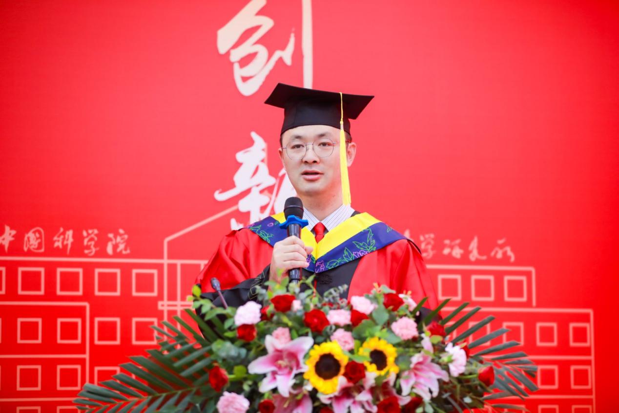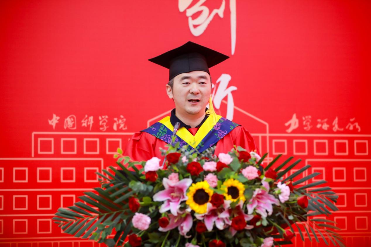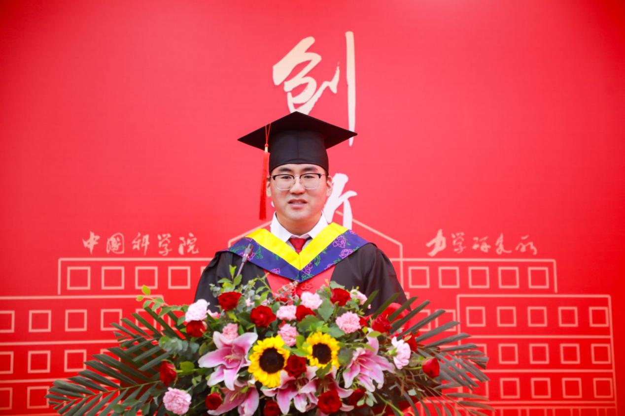 毕业生代表张晨在发言中,深情回顾了科研路上捕捉液滴动力学瞬间的雀跃,以及通宵达旦求证的执着。他将这段科研历程诠释为“意志的淬炼和灵魂的修行”,并代表全体毕业生,由衷感谢力学所提供的学术沃土,感恩导师们的悉心指引,感谢各位领导老师的鼎力支持,更感谢家人始终如一的无私奉献。