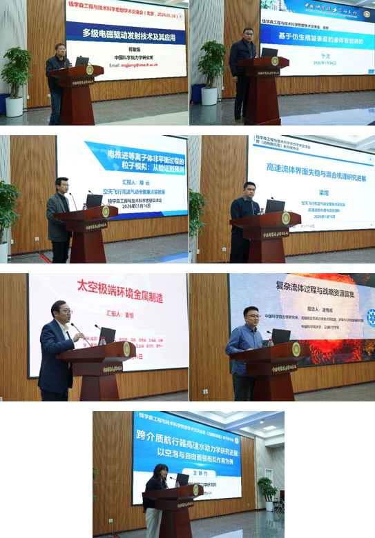 下午开展了青年学术交流报告会,力学所超常环境非线性力学全国重点实验室蒋敏强研究员、李龙副研究员,空天飞行高温气动全国重点实验室胡远研究员,微重力重点实验室姜恒研究员,流固耦合系统力学重点实验室凌博闻研究员、王静竹研究员等七位青年科研人员分享了最新研究成果。这些报告内容前沿、方法创新,展现了青年一代科技工作者直面国家重大需求与世界科技前沿,勇于探索、锐意进取的精神风貌。