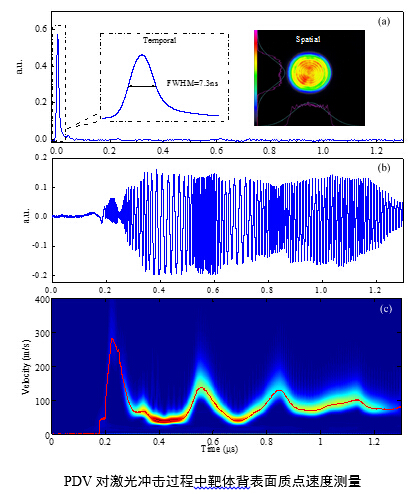 在中国科学院装备研制项目和国家自然科学基金的支持下,中国科学院力学研究所流固耦合系统力学重点实验室冲击与耦合效应课题组建立了多物理场同步测量的短脉冲强激光驱动的爆炸与冲击实验平台,研制了亚纳秒量级响应时间的光子多普勒质点速度测量系统(Photonic Doppler Velocity, PDV),针对不同的速度幅值和频响特征,分别发展了基于短时傅里叶变换和连续小波变换的软件处理方法,能够对低速且快速变化的质点速度进行测量(Rev. Sci. Instrum., 83: 073301, 2012);分析了靶体表面状态对PDV测量精度的影响并提出了合理改进方法(Meas. Sci. Technol., 25:055207, 2014);将PDV测速技术与PVDF测压技术相结合,发展了比传统的霍普金森压杆更为紧凑的材料动态力学性能测量装置(Int. J. Impact Eng., 69:149-156, 2014)。