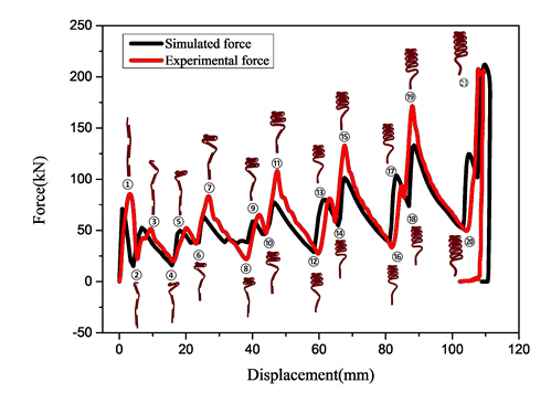 图3梯度缺陷筒压溃力的数值模拟结果与实验结果比较