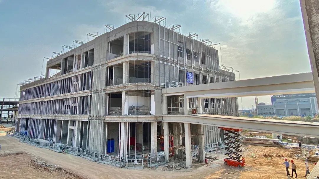 近日,中科宇航公司在广州南沙建设的中科空天飞行科技产业化基地一期随着钢结构厂房屋面板铺设完成,各车间主体结构顺利封顶,规划效果已初步成形。