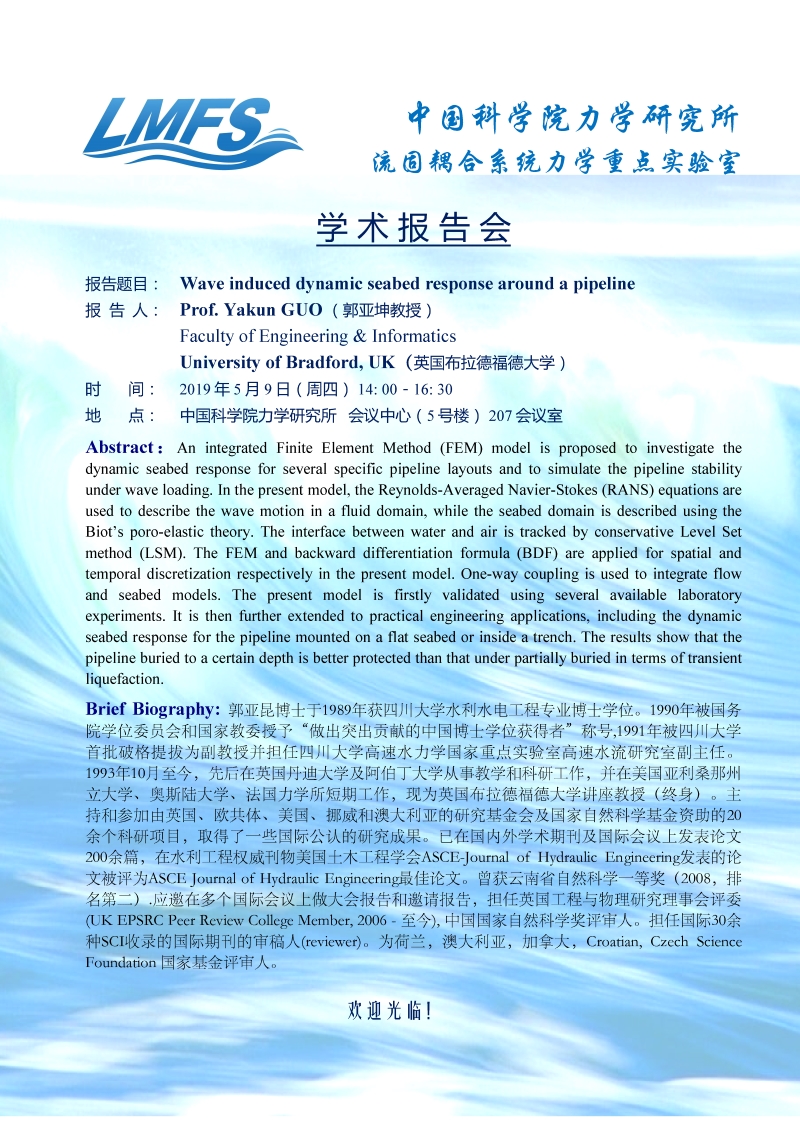 (LMFS 05月09日14:00 会议中心207)Wave induced dynamic seabed response around a pipeline