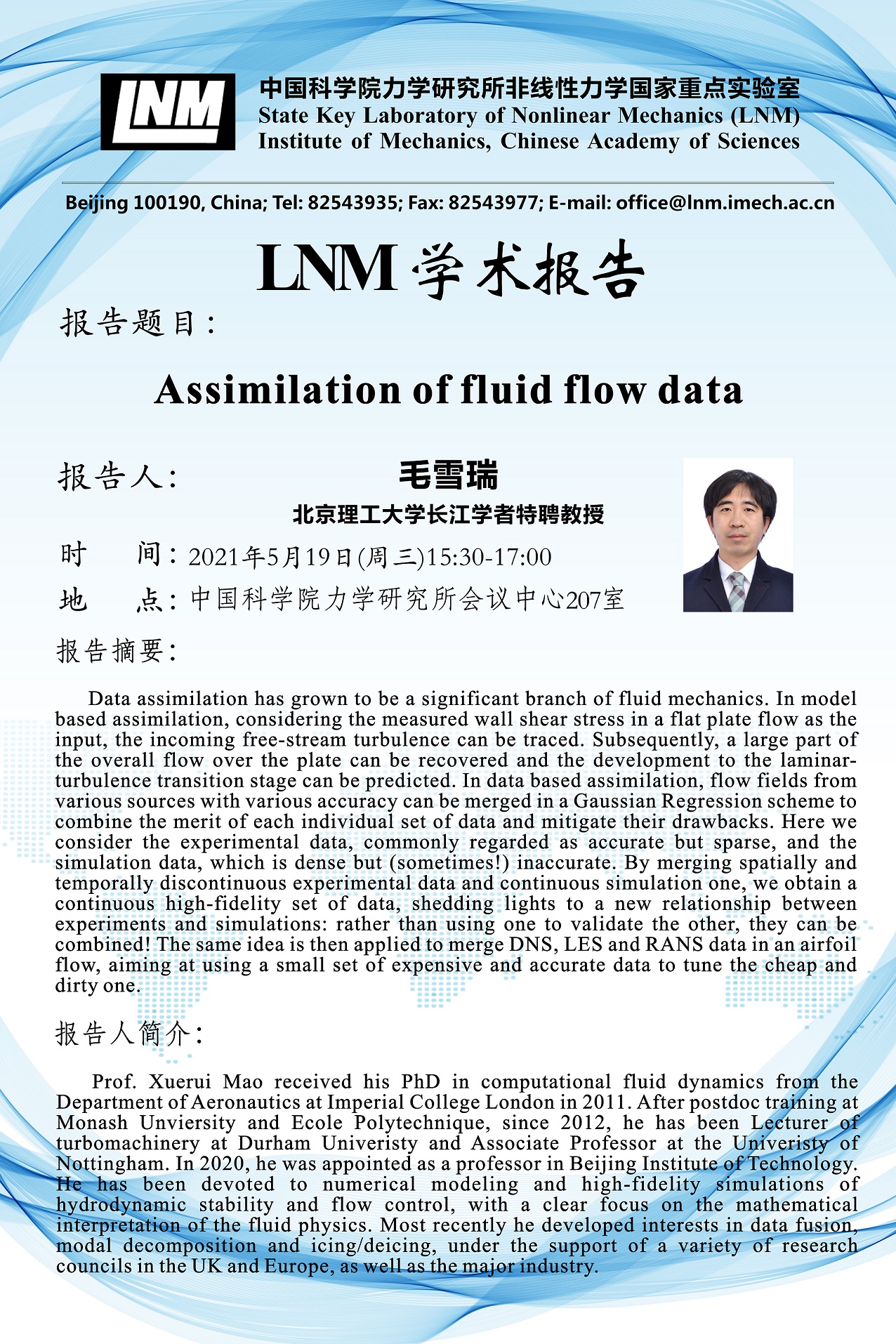 (5月19日 15:30 会议中心207)Assimilation of fluid flow data