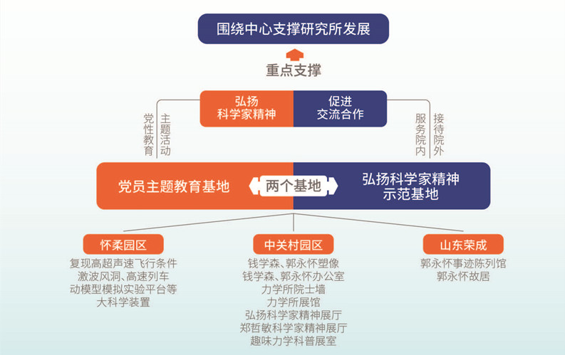 党员主题教育基地和弘扬科学家精神示范基地相辅相成、资源共享,都是充分体现科学家精神的重要载体。党员主题教育基地侧重在党员教育和党性锤炼方面发挥重要作用;弘扬科学家精神示范基地注重体现在研究所发展和科研实践中科学家求真务实、报国为民、无私奉献的先进事迹和家国情怀,侧重对科技工作者政治引领、思想教育和精神激励。