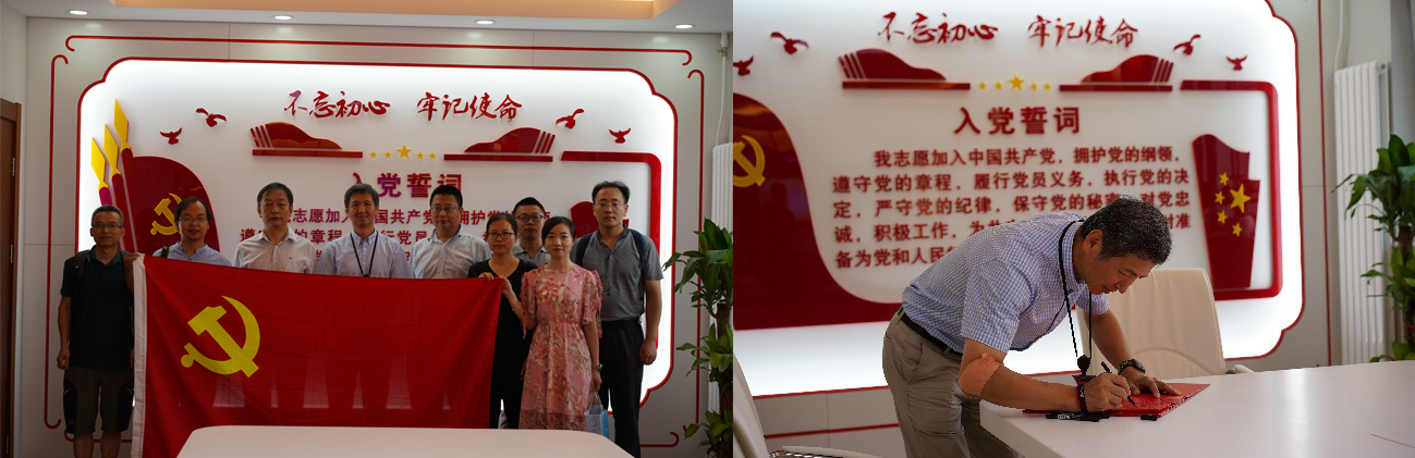大家还参观了力学所党员主题会议室,在庄严的入党誓词墙前,在党旗的见证下,张新宇同志领誓,带领全体党员重温了入宣词。每一句庄严承诺的誓词,都是共产党员的责任和使命。随后大家观看了红色纪念短片,在回顾中追述前人、思考自己的初心和使命。