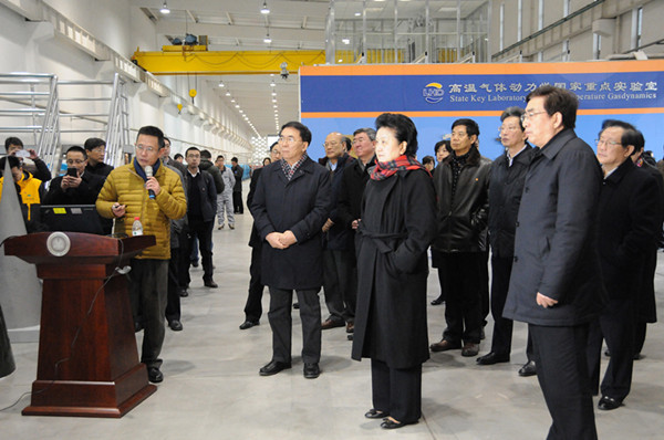 2017年2月7日上午,中共中央政治局委员、国务院副总理刘延东,中共中央政治局委员、北京市委书记郭金龙,全国政协副主席、国家科技部部长万钢,中科院白春礼院长,北京市蔡奇市长等,前往中国科学院力学研究所怀柔园区调研。 中科院力学所樊菁所长向刘延东一行汇报力学所情况,重点介绍坐落于怀柔园区的复现高超声速飞行条件激波风洞和高速列车动模型试验平台。刘延东现场认真考察这两座试验设备后表示,看到世界上最先进的高超声速激波风洞和高速列车动模型试验平台,非常高兴,这些设备对于我国航空航天、高速列车技术的创新发展有重要意义,你们能做出这样原创性的的大型科研设备非常了不起。刘延东对力学所瞄准国家重大需求,勇于探索的创新精神,深表赞同,希望中国科学院进一步贯彻落实习近平总书记在“科技三会”上的讲话精神,为北京市建设具有世界影响力的科学中心贡献力量,不辜负党和国家的期望。 考察期间,刘延东请力学所领导转达她对全所职工的新春问候。