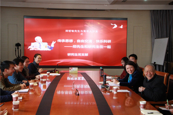 2017年3月30日,中国科学院力学研究所研究生党支部组织了主题为“郑哲敏先生和研究生在一起”座谈会。这次座谈会是力学所党委主办的“郑哲敏先生与青年人沙龙”系列活动的第七期,由研究生党支部承办。党委书记刘桂菊应研究生支部的邀请参加了座谈会。