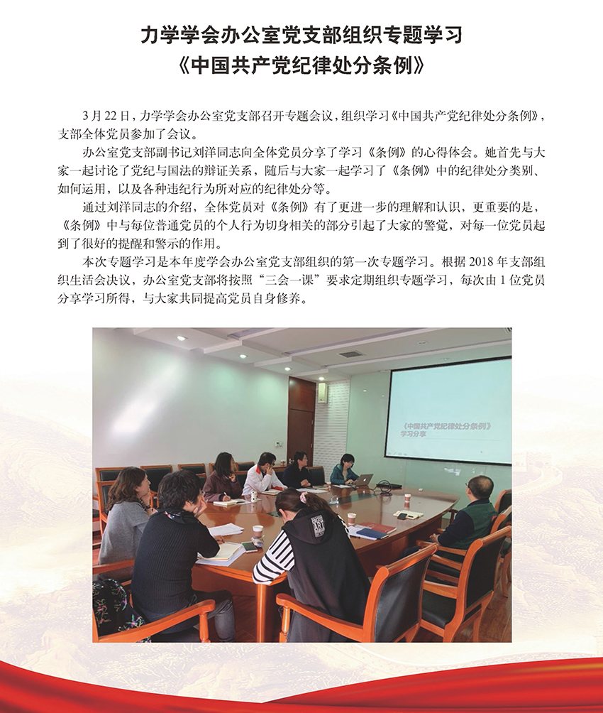 力学学会办公室党支部组织专题学习《中国共产党纪律处分条例》
