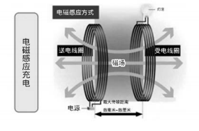 最为常见的无线充电方式是利用电磁感 应原理,在发送端和接收端各有一个线圈, 将一定频率的交流电加在初级线圈上,通过 电磁感应在次级线圈中产生一定的电流,从 而将能量从传输端转移到接收端。