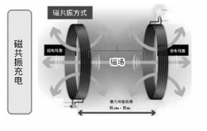 磁场共振式无线充电技术利用“磁耦合 共振”原理来实现,由能量发送装置和能量 接收装置组成, 当两个装置调整到相同频率 , 它们就可以交换彼此的能量。