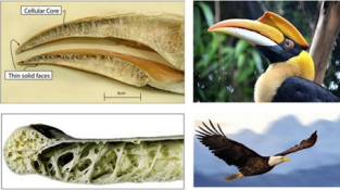 图 1 犀鸟喙 ( 上图 ) 和鸟翼骨 ( 下图 ) 的横截面(图片来自于网络)