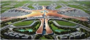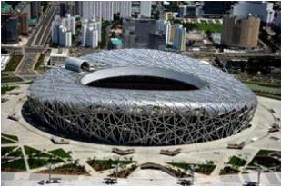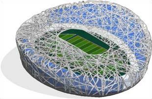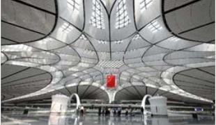 有网友将中国称为“基建狂魔”。其实 力学一个很重要的应用就是建筑领域。任何 建筑物都是由很多构件按照一定的设计组合 而成。我们的日常生活中遇到最多的一种构 件是“杆件”,它们的几何特征是长度远大 于横向尺寸(例如直径) ,工程中的梁、轴、柱都属于杆件。例如,美丽的鸟巢(图 1) 是我们奥运会的代表性建筑,北京大兴国际 机场(图 2)也成为了北京的新名片。这些 建筑都是由各种形式、尺寸的杆件组合而成 的结构,在建造时都需要进行严格的力学设 计考核。