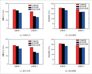 其实,力学是一门交叉研究突出的学 科。除了建筑、机械、航空航天等领域,力 学在生命科学领域也发挥着重要的作用。例 如,骨科手术中经常使用钢板对骨折进行内 固定,就需要钢板和钉子等有足够的强度, 以保证在骨折完全愈合并能够承重前,由钢 板 / 钉子来承受骨折部位的外力。否则,则 会出现手术失败的情况(图 4) ,给患者带 来更大的痛苦。再例如,经常有洗发水广告 声称能“强韧”发质。而实际研究发现 [1], 用洗发水对头发的性能并不能起到“强韧” 效果, 相反, 从研究中所涉及的样品来看(图 5) ,代表头发弹性、塑性指标的屈服应力、 抗拉强度、最大应变、杨氏模量等关键力学 参数都有不同程度的下降。