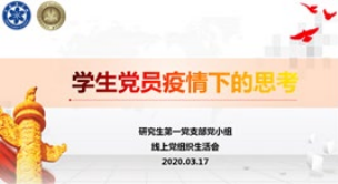 研究生一支部第五党小组在线上召开了一次别开生面的党组织生活会。交流会上, 大家从党员的先锋模范作用到基层党组织的 战斗堡垒作用,从科学与科学家在抗击病毒 中扮演的角色到国家治理体系和治理能力的 现代化,讨论的内容由浅入深、由点到面, 充分地交换了各自想法。杨明同志在疫情初 期就主动联系了一批志愿者,积极地联络各种前线急缺的医疗物资并组织捐赠。他分享 的故事赢得了大家纷纷点赞,也让我们看到 了年轻党员们的无限可能。