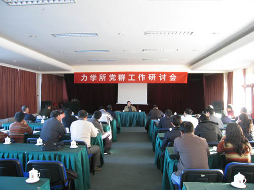 | 11月21-22日,力学所召开2008年度党群工作研讨会,总结一年来取得的成功经验,分析存在的问题,紧紧围绕新形势下党群工作如何进一步“围绕中心,发挥作用,促进改革创新发展”进行专题研讨。会议由党委书记周德进主持,各党支部、工青妇负责人、职代会主席团成员及科研人员、研究生代表参加了会议。 周德进结合党委工作考评有关安排,回顾了党委两年工作基本情况,通报了全所学习实践活动的进展情况。在分组讨论环节,与会人员分党群工作组、工会职代会组两个会场展开讨论,分别就“发挥党支部作用,形成党政合力”、“加强科研道德建设,营造优良学术(学习)氛围”、“在新形势下如何更好的发挥职代会作用”、“围绕中心、服务职工、创新发展、争创模范职工之家”等议题进行了研讨。 此外,党群工作组还就共青团组织推优入党、研究生党员发展管理、党委工作考评具体安排等问题展开讨论,工会职代会组对工会起草的“文体活动管理办法”和“职工活动场所管理办法”进行了审议。心理所郑希耕博士给与会人员作题为《心理健康在科研、管理及生活中的作用》的心理辅导报告。 研讨会上与会代表畅所欲言,建言献策。大家纷纷表示,会议的召开对深入学习实践科学发展观,进一步发挥党群工作围绕中心服务大局作用,构建和谐奋进力学所,起到了很好的推动作用。