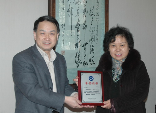 | 马扬向上一任纪委书记李和娣颁发荣誉证书 |