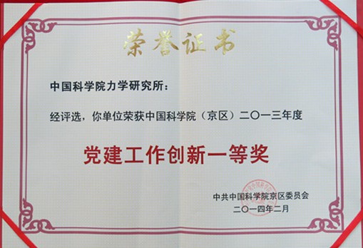 力学所荣获2013年度党建工作创新一等奖
