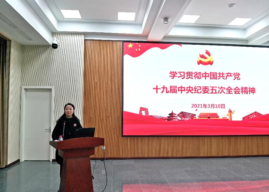 杨旭传达了习近平总书记在十九届中央纪委五次全会上的重要讲话和会议有关精神。习近平总书记在讲话中充分肯定了过去一年全面从严治党取得新的重大成果,深刻阐述全面从严治党新形势新任务,高屋建瓴、思想深邃、内涵丰富,是推进全面从严治党向纵深发展的重要遵循。她强调,各党总支、党支部要认真部署,采取学习研讨、座谈交流等方式增强学习效果,确保落到实处。随后,带领大家学习了新修订的《中国共产党党员权利保障条例》,阐述了《条例》修订的背景和意义,从5 个问题出发重点介绍了《条例》的主要内容。她强调要把学习宣传贯彻《条例》作为一项长期重要任务抓紧抓好,各党总支、党支部通过“三会一课”、主题党日、党员培训、专家辅导、论坛讲座等形式组织党员开展学习研讨,确保学深学透。