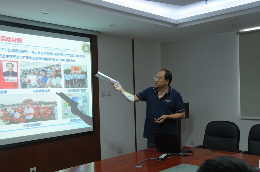 刘桂菊传达了中科院院长、党组书记侯建国专题党课报告精神以及中科院副院长、党组副书记阴和俊在报告会上的重要讲话,并传达了力学所在党史学习教育中结合实际组织开展中科院弘扬科学家精神示范基地启动式及体验活动的情况。