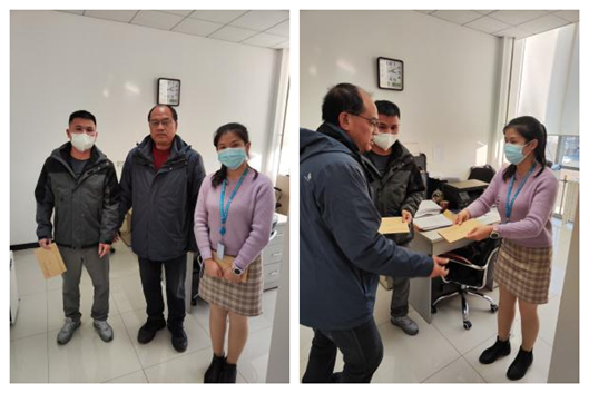 12月8日,力学所党委书记、所长刘桂菊,党委委员、工会主席杨国伟分别在中关村园区和怀柔园区,慰问疫情防控一线工作人员,对大家在疫情期间坚守岗位、无私付出的奉献精神致以敬意和感谢,希望大家继续坚守岗位,认真落实各项防疫举措,用实际行动保障职工和学生的安全和健康,为研究所科研管理工作的有序开展作出贡献。