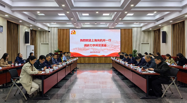 4月4日上午,上海光机所党委书记邵建达,党委委员、副所长张龙,党委委员、副所长李学春,党委委员、纪委书记彭芳,及相关部门负责人到力学所进行调研交流。力学所党委书记刘桂菊、纪委书记叶海华及相关部门负责人参加交流会议。会议由叶海华主持。