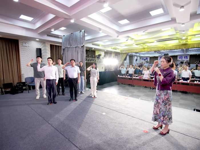 会议最后颁发了“光荣在党50年”纪念章并进行入党宣誓活动,由纪委书记杨永峰主持。王瑞芹为力学所老党员颁发了2024年“光荣在党50年”纪念章。刘桂菊带领新党员同老党员一起重温了入党誓词,并与王晓虹、罗喜胜一同向新党员赠送了《中国共产党章程》及科学家精神书籍。