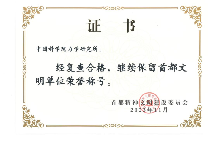 近日,首都精神文明建设委员会发布了2021-2023年度首都文明单位名单和首都文明单位复查保留名单,中国科学院力学研究所通过复查,保留“首都文明单位”称号。
