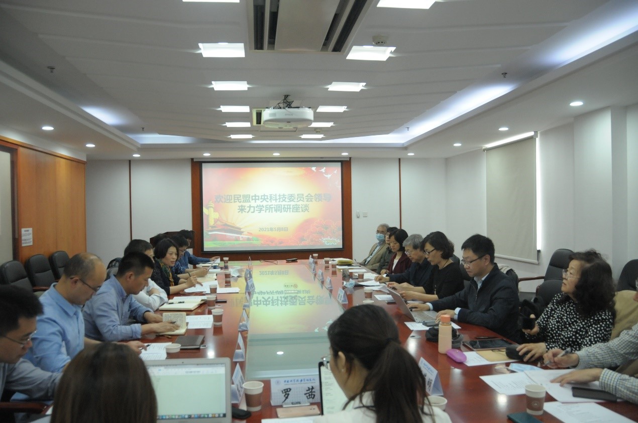 5月8日下午,民盟中央科技委员会主任周元一行到力学所调研交流。所长、党委书记刘桂菊,副所长魏炳忱,以及相关科研人员陪同调研。 座谈会由刘桂菊主持。