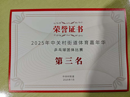 7月12日-13日,中关村街道举办了2025年体育嘉年华乒乓球比赛,力学所组队参加,经过两天的激烈角逐,荣获比赛季军。
