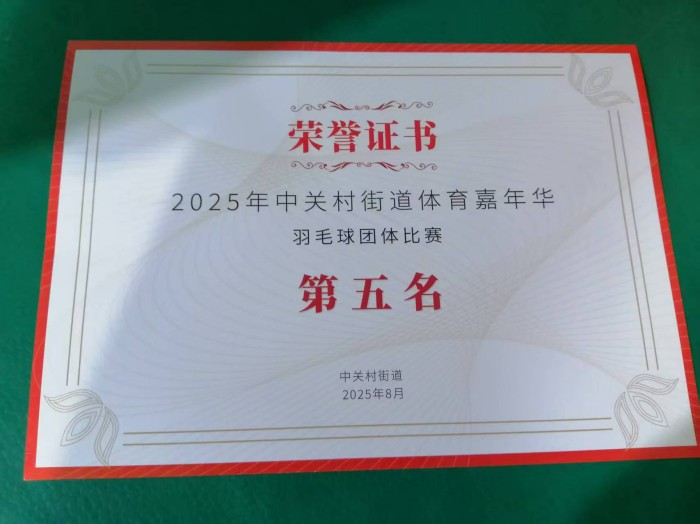 2025年8月2日至3日,力学所参加了中关村街道举办的2025年体育嘉年华羽毛球比赛。在前期已取得体育嘉年华乒乓球比赛季军的基础上,羽毛球比赛也传来好消息,以小组第一名的成绩脱颖而出,最终斩获第五名的佳绩。
