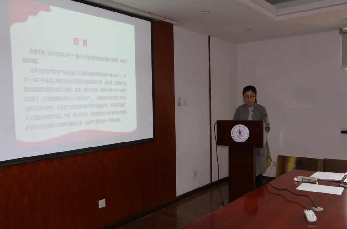 支部副书记王莉婷以“改革开放四十年”为主题向全体参会人员宣讲党课,主要介绍了改革开放四十年的巨大成就,并分享讲解了习近平庆祝改革开放40周年讲话的关键词。支部青年委员刘亚冰结合党课内容及个人参观国家博物馆庆祝改革开放40周年大型展览的经历发表了学习感想;支部党员孙春燕结合个人经历与大家分享了改革开放以来在力学所工作和生活的环境变化。