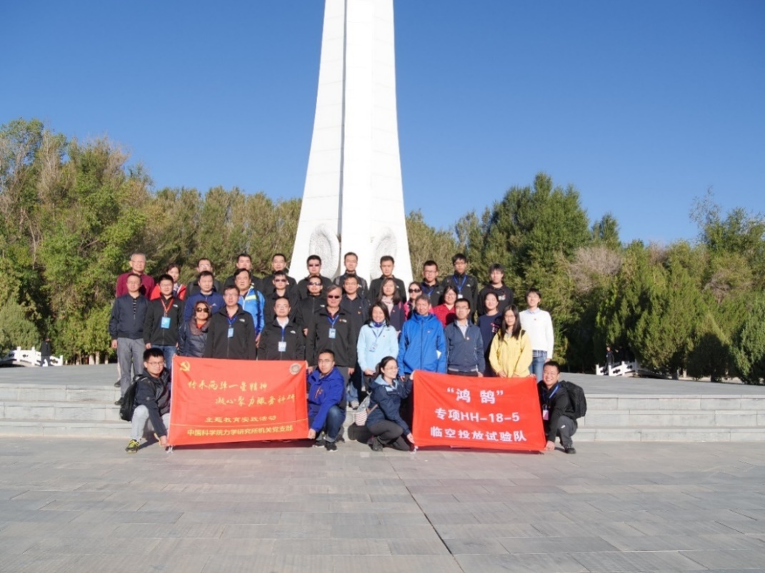 为学习贯彻习近平总书记新时代中国特色社会主义思想和党的“十九大”精神,落实中组部、中宣部关于在广大知识分子中深入开展“弘扬爱国奋斗精神,建功立业新时代”活动的通知和中科院关于开展“讲爱国奉献,当时代先锋”主题活动的通知要求,进一步坚定爱国奉献理想信念,力学研究所机关党支部于9月15日至17日在酒泉卫星发射中心开展了“传承两弹一星精神,凝心聚力服务科研”主题教育实践活动。所长、党委委员秦伟,党委书记、副所长刘桂菊,党委委员、工会主席张新宇及职能部门党员代表等20余人参加了活动。