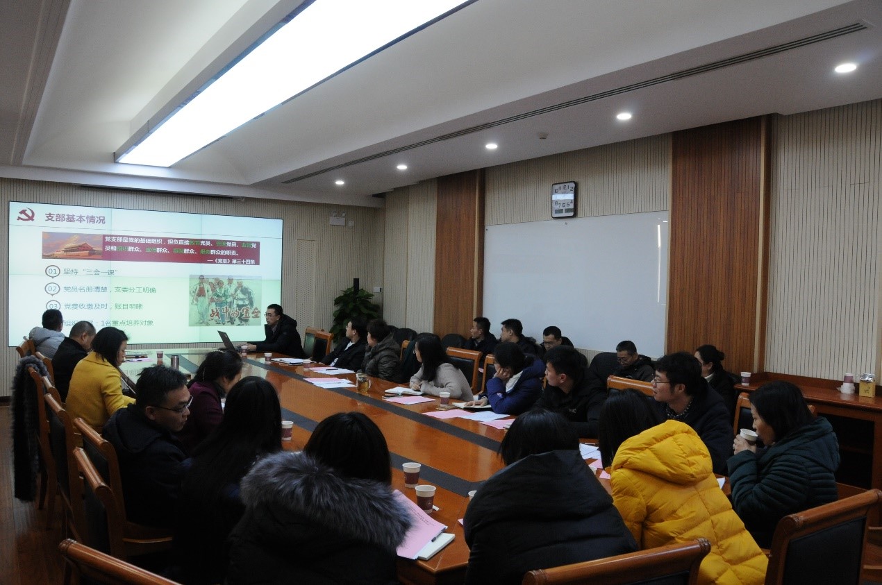 12月28日,机关一党支部开展“团结协作 锐意进取 迎接2019”主题党日活动暨支部书记述职评议会,议程包括支部书记述职、优秀党员和党群工作者评选、失联党员处置决议、党课学习、讨论交流等环节。共23名党员参加了会议,会议由支部书记卢哲猛主持。