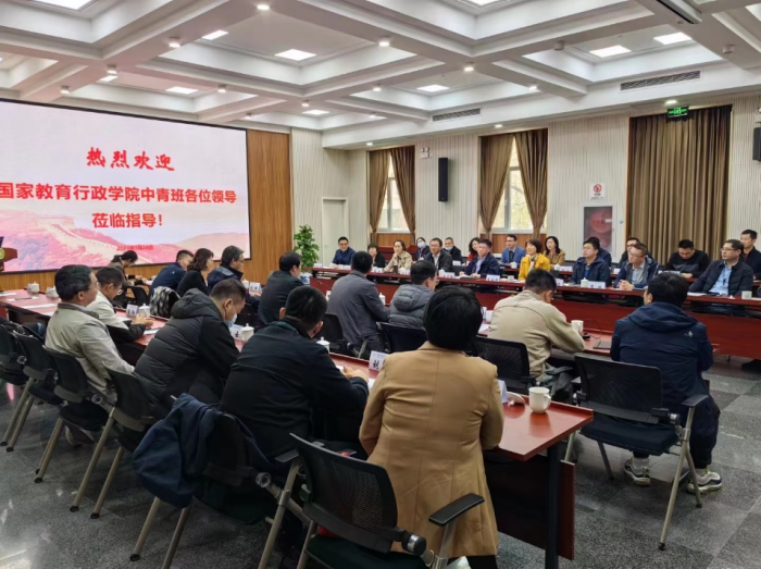 3月24日,国家教育行政学院管理教研部副主任李永贤和教育制度创新研究中心主任赵宏强率中青班考察团来力学所调研交流。考察团成员来自中国科学技术大学、中国地质大学(武汉)、南京理工大学、苏州大学等30多所高校。力学所所长、党委副书记罗喜胜出席会议,相关职能部门负责同志、机关第一党支部党员代表参加了座谈交流会。会议由党委委员、所务委员、机关第一党支部书记、人力资源处处长卢哲猛主持。