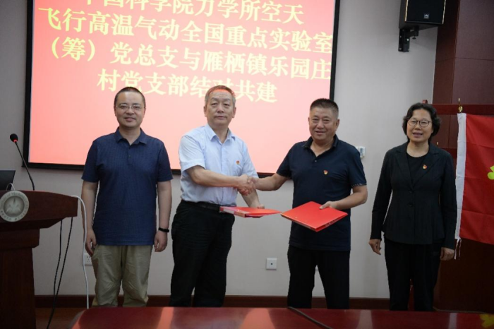 7月13日下午,LHD党总支与怀柔区雁栖镇乐园庄村党支部在力学所怀柔园区举行了结对共建活动。怀柔区委常委、统战部部长鲍晓健,副部长房淑军、崔波,雁栖镇副镇长肖冰,村党支部书记蔡长海,第一书记张明哲及支委参加了结对共建活动。力学所副所长、LHD实验室主任黄河激,LHD党总支书记赵伟,党总支副书记兼实验室副主任李飞,第一党支部书记申义庆及全体支委和园区的党员代表参加了本次活动。会议由赵伟主持。