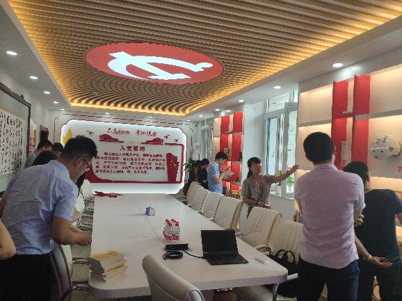 听取主题教育基地建设情况介绍和参观党员主题会议室