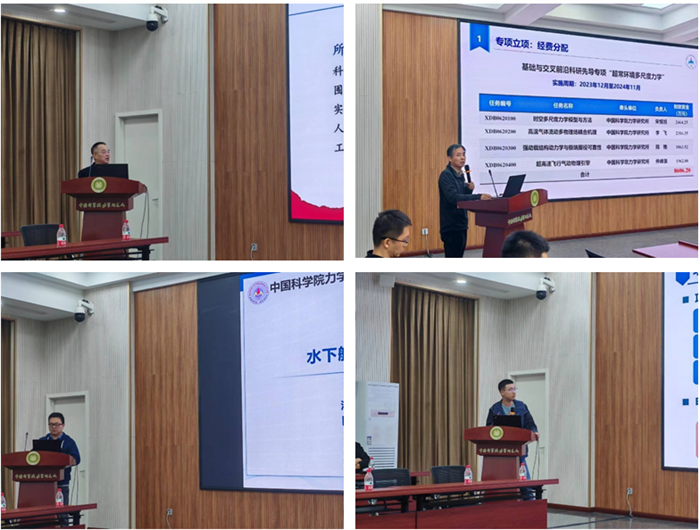 会上,LHD实验室副主任孙泉华首先介绍了《超常环境多尺度力学》先导专项相关情况,他回顾了专项立项历程、研究目标与预期成果,组织管理和进展情况,剖析了当前专项所面临的挑战与潜藏的机遇,呼吁大家加强合作、相互支撑,共同凝练好成果,更好地完成专项。LNM实验室刘毅介绍了水下航行体调研和研究的情况,结合与几家总体单位的交流体会,分析了水下航行体技术面临的挑战和机遇。
