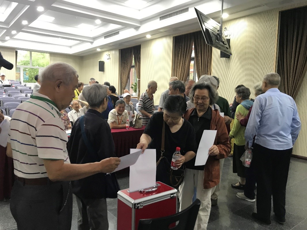 会上厉文萍代表支委会做了工作报告,汇报了本届支委会的工作情况及支部经费使用情况。之后会议通过了离退休人员党支部换届选举办法,通过了选举主持人、计票及监票人提名,由离休党员韩林同志主持选举。经党员提名、支部讨论研究、充分酝酿后,对提名的9位侯选人进行无记名投票,选举产生厉文萍、韩延良、汪清、王翠茹、王国栋、李嘉琪、田兰桥7名同志为新一届支部委员。
