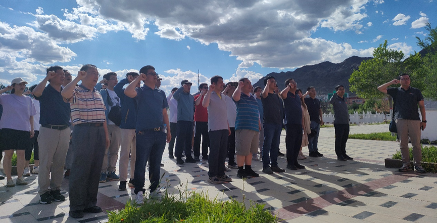 随后参加共建活动的代表又来到了伊吾40天保卫战广场,这里长眠着为保卫伊吾而献身的32位烈士。通过讲解员详细讲解整个保卫战过程,代表们深刻体会到烈士们的丰功伟绩、人格魅力和不朽精神,也深刻认识到现在来之不易的生活是与历代共产党人不怕牺牲、挥洒热血分不开的,这些英雄为新疆民族团结和繁荣稳定做出了巨大贡献。虽然过去了70年,战场硝烟早已散去,但人们没有忘记烈士们的丰功伟绩和不朽精神,这次共建活动让每一位代表都深刻认识到正是历代共产党人不怕牺牲、挥洒热血、艰苦奋斗,换来了祖国的繁荣稳定、民族团结,幸福生活来之不易,需要倍加珍惜和爱护。在伊吾40天保卫战发生的北山胜利峰脚下,参与联合主题党建活动的党员们重温了入党誓词,更加坚定了为共产主义奋斗终身的理想信念。