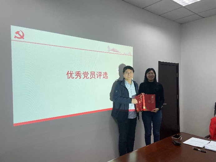 在评议和交流阶段,三个党小组组长分别汇报了组织生活开展情况,并分别推荐了支部优秀共产党员候选人,介绍了候选人的基本情况,会议通过民主评议和无记名投票,选举产生了2021年度支部优秀共产党员和优秀党务工作者。代玉灵同志和肖歆昕同志分别为获奖同志颁发证书,代玉灵同志讲话,积极评价了支部2021年的各项工作,并就近期党建工作重点以及内部审计工作做了介绍,和与会党员进行了深入交流。