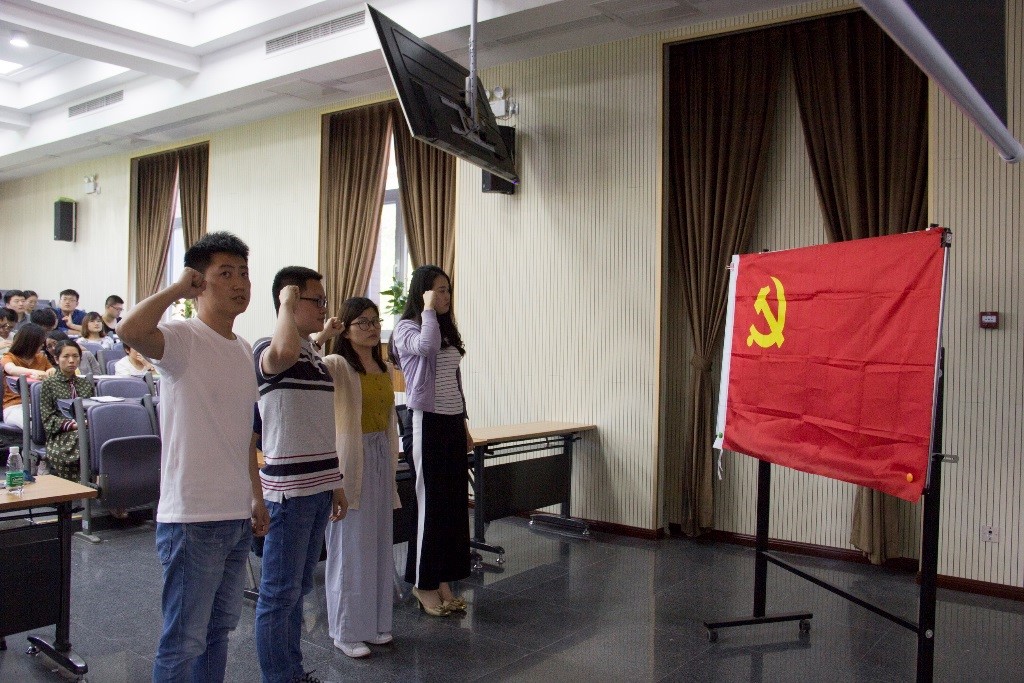 研究生一支部共有党员51人,到会正式党员44人;研究生二支部共有党员63人,到会正式党员54人,符合选举要求。会上,经无记名投票表决,一致同意吸收张犁天为预备党员,一致同意高梦霓、时北极两名同志转为中共正式党员。研究生二支部副书记马彦同志带领三名同志宣读了入党誓词。