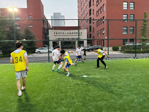 为了丰富力学所2023年优秀大学生力学夏令营营员的课外活动,力学所研究生会体育部和宣传部共同组织了力学所师生对阵夏令营员的足球友谊赛。比赛于2023年7月11日晚七点准时在力学所足球场内打响。