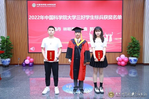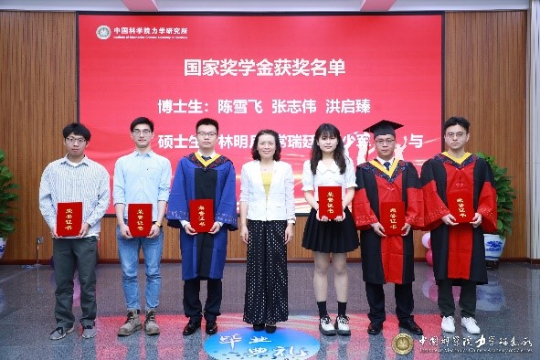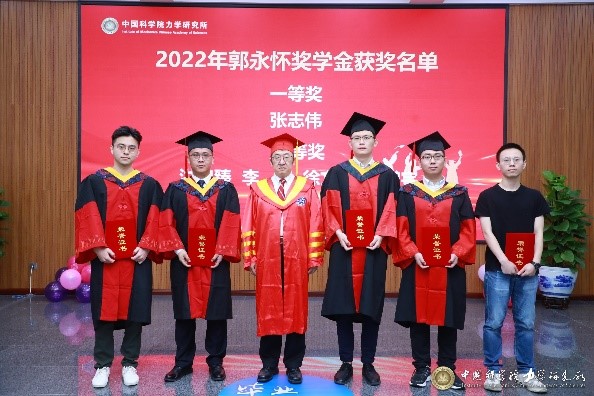 典礼上,学位委员会副主任蒋敏强研究员宣读了2022年度研究生获奖名单,刘桂菊、何国威、学位委员会主任孙泉华、副主任鲁晓兵分别为“国家奖学金”、“郭永怀奖学金”、“优秀毕业生”、“三好学生标兵”、“优秀学生干部”和“三好学生”获得者颁奖。